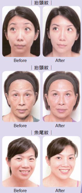 肉毒桿菌是一種經過萃取的蛋白質,具有阻斷神經傳導的作用,可以消除因為肌肉過度活動所產生的皺紋。肉毒桿菌在醫學美容界已被廣泛地運用,是一項安全的微整型方式,主要是用來消除臉部的紋路,例如:皺眉紋、抬頭紋、魚尾紋…等等,還可以修飾臉部輪廓,達到瘦臉的效果,另外也可用在腿部的修飾,讓腿部線條更完美。